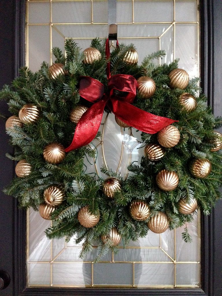 A holiday wreath above the sink adds a cozy Christmas touch to your kitchen. This simple holiday decor ornament can brighten up your holiday kitchen with a touch of Christmas. Choose a farmhouse Christmas style wreath for a warm, rustic vibe that your friends and family will love.