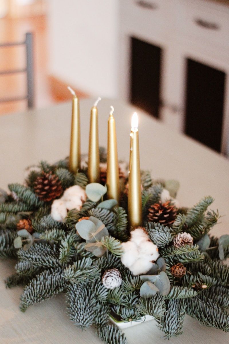 Brighten up your office with festive candle holders featuring colorful holiday candles. These modern Christmas decor pieces add a warm touch to your office environment.