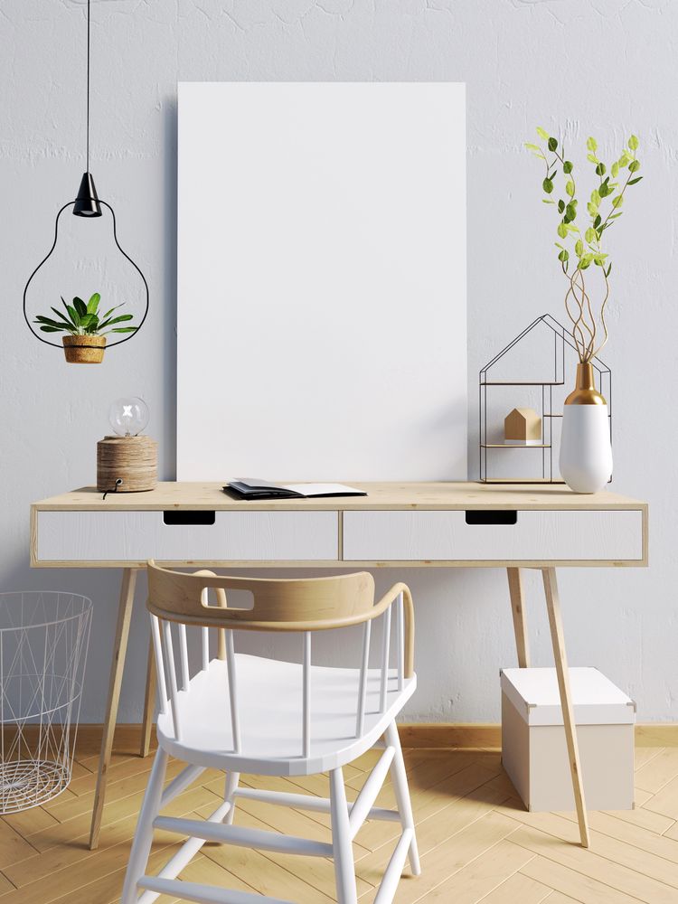A modern minimalist kitchen desk can really enhance your space. With clean lines and a simple design, it fits perfectly into a functional kitchen area.