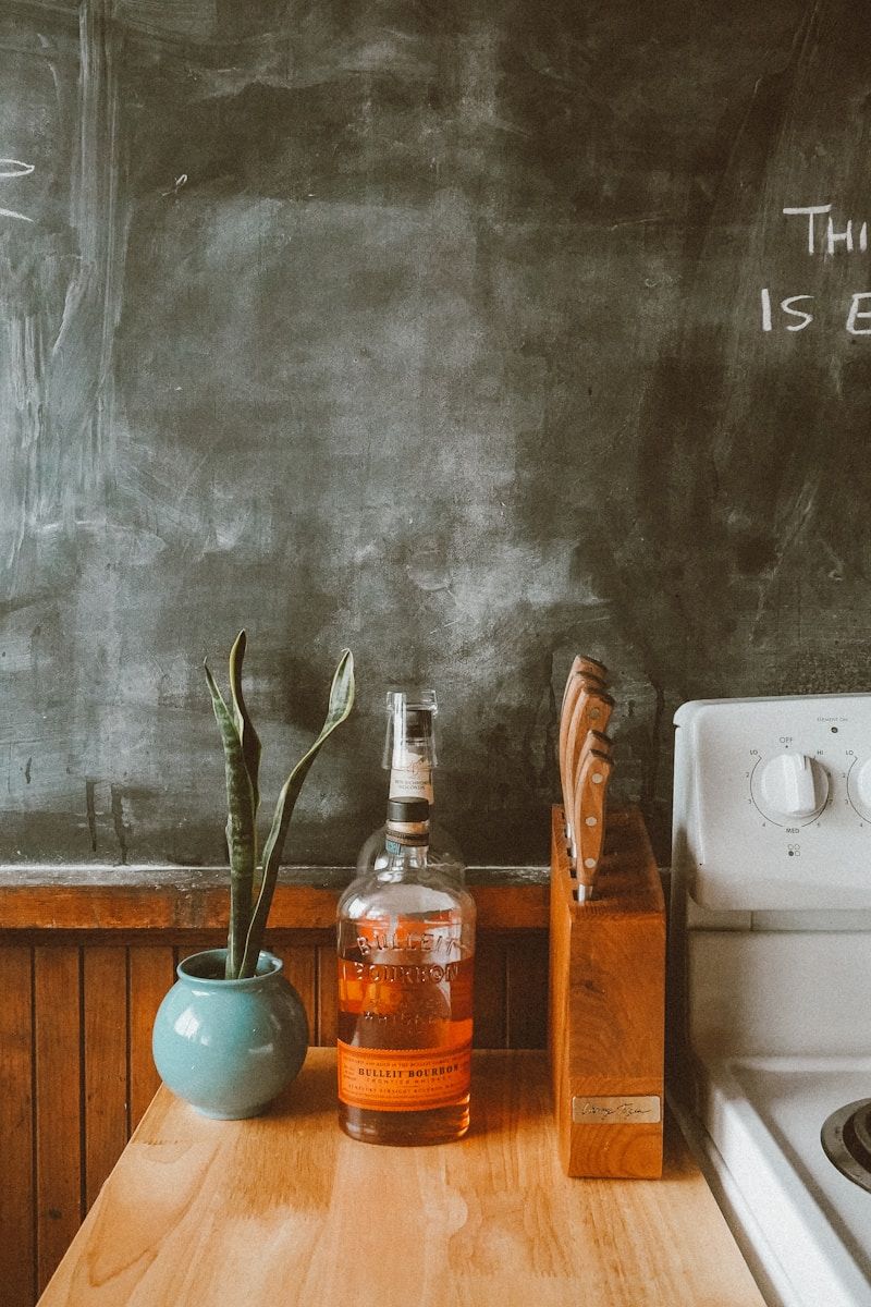 A chalkboard wall can turn your kitchen desk area into a functional and fun space. You can jot down notes, project details, or even doodles while you work.