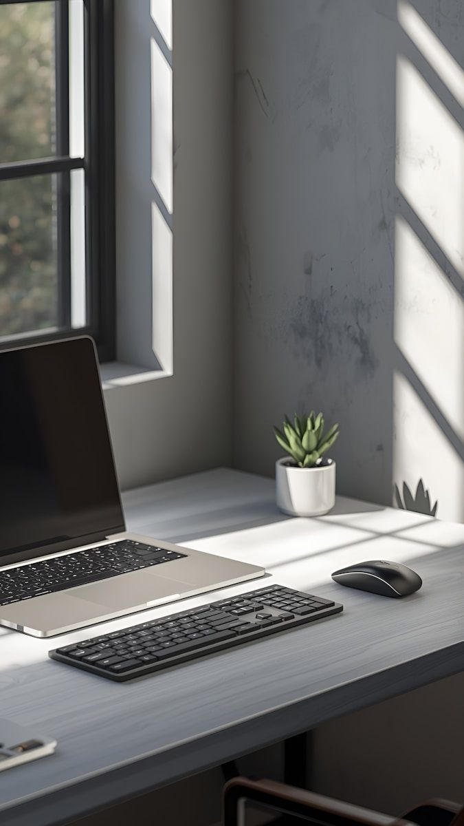 Creating a calming work office decor starts with a clean and minimalistic desk setup. Use natural materials like wood or glass and add a touch of greenery with a small plant to enhance your Zen office space.